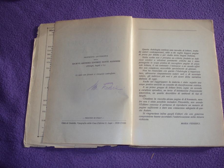 PROSATORI ITALIANI - Maria Federici 1939. - potpis autorice