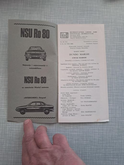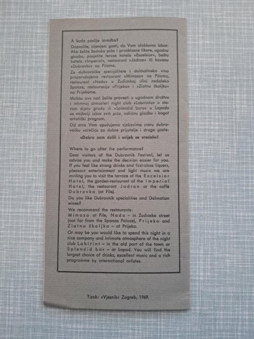 prospekt festival dubrovnik 1969.g. dundo maroje-drama