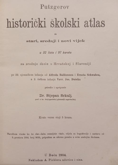 Putzgerov historički školski atlas za stari, srednji i novi vijek.