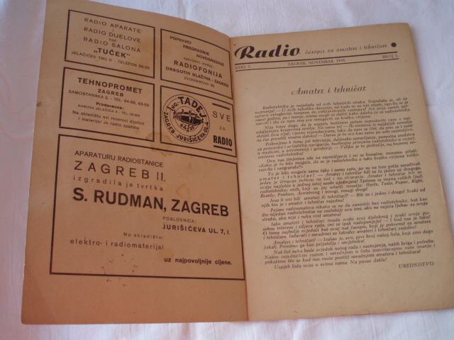 RADIO-časopis za amatere i tehničare, godina 1945, godina 1 , broj 1, meke korice, format 24 x 17 cm.