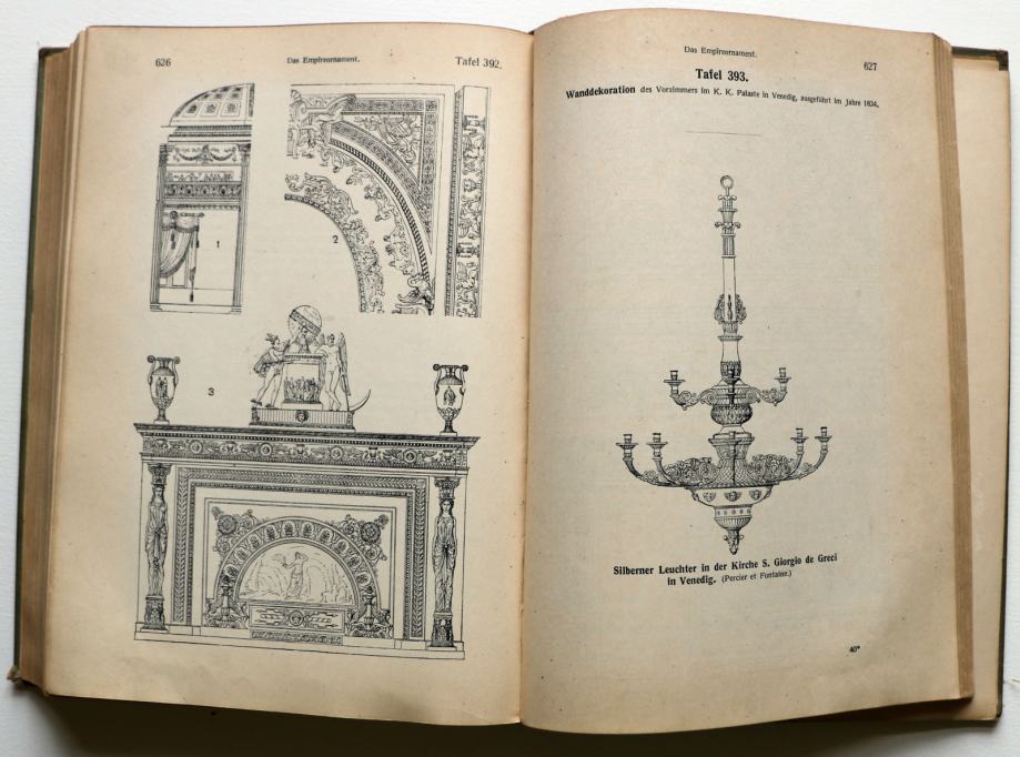 Iz biblioteke poznatog hrvatskog slikara Ive Režaka, potpisana. Bogato ilustriran priručnik ornamenata, stilova i razdoblja za arhitekte, slikare, dizajnere, modelare. Može i zamjena za zvučnike.