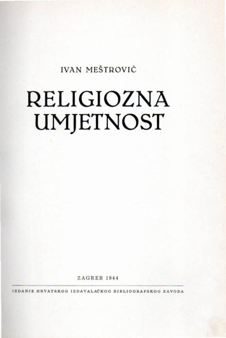 Iz uvoda: "... U čitavoj se Meštrovićevoj religioznoj umjetnosti odrazuje "težnja k njavišoj mudrosti i k najvišem skladu", ali i mukotrpnost puta, kojim čovjek mora proći, ako se uzpinje noseći u sebi zapaljeni žižak kroz mrak, tmušu i oluju do na vrh brda. Kao Krist polazeći na Kalvariju,, umjetnik mora na tom putu posrtati, padati, opet se dizati i ne sustati, sve dok zadaća ne bude do kraja izpunjena. Meštrovićeva je zastava, koja leprša i trza se po danu, hrvatska i čovječanska, Meštrovićeva je svjetiljka, koja podrhtava i njiše se noću, religiozna i božanska."