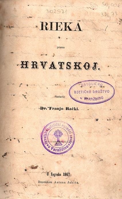 Autor knjige Rieka prama Hrvatskoj, Franjo Rački rođen je u Fužinama 25. studenoga 1828. Preminuo je u Zagrebu 13. veljače 1894. Osim što je za sobom ostavio golemo djelo, koje se i danas proučava jer je aktualno i zanimljivo, prvi je među našim povjesničarima pokušao objektivno i kritički promišljati prošlost. Protivio se mađarskim posezanjima te se iscrpno bavio hrvatsko-ugarskim odnosima, posebice u odnosu na Rijeku.