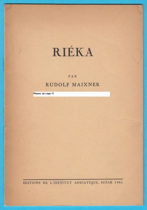 RIEKA (Rijeka - Fiume) par Rudulf Maixner - stara knjiga (Sušak 1945.)