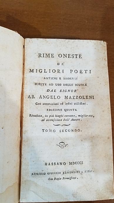Rime oneste de' migliori poeti antichi e moderni scelte ad uso delle scuole dal signor ab. Angelo Mazzoleni 1801.