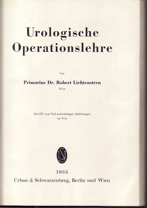 ROBERT LICHTENSTERN : UROLOGISCHE OPERATIONSLEHRE , BERLIN WIEN 1935.
