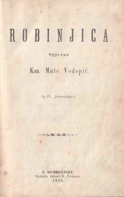 Stihovana romantična pripovijest Robinjica (1875). Nevelike je književne vrijednosti, ali je imala velik uspjeh kod čitatelja.