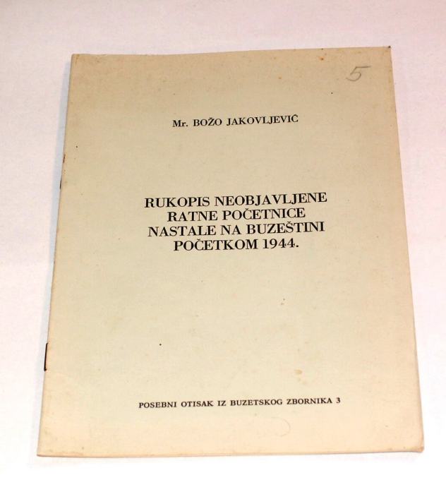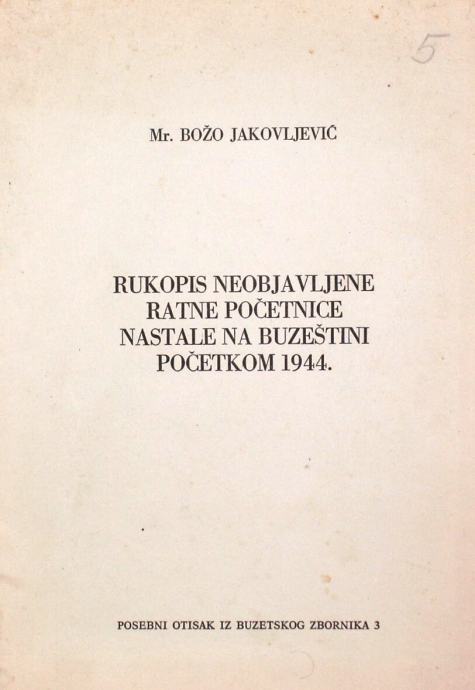 RUKOPIS NEOBJAVLJENE RATNE POČETNICE NASTALE NA BUZEŠTINI POČETKOM 194