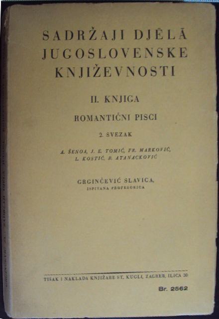 SADRŽAJI DJELA JUGOSLOVENSKE KNJIŽEVNOSTI - Šenoa,Tomić, Marković...