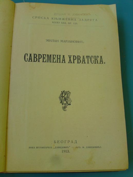 Knjiga o historiji hrvatske u viđenju srpskog autora milana Marjanovića, u izdanju srpske književne zadruge, Beograd, 1913.g., izdata pred prvi svjetski rat, zanimljiva tematika od strane naših susjeda, br. str.360, tvrde korice.