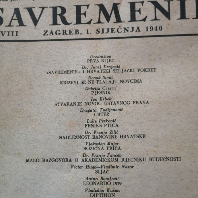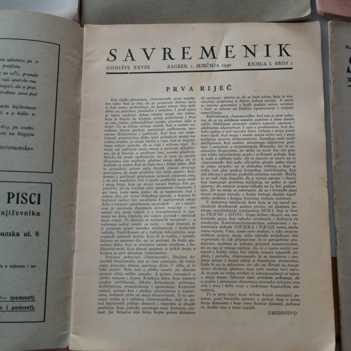 Prodajem lot dobro očuvanih časopisa, Savremenik u izdanju društva Hrvatskih književnika iz 1940 godine.