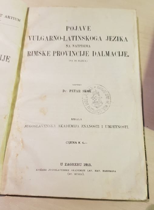 Skok Petar: Pojave vulgarno-latinkoga jezika na natpisima rimske provincije Dalmacije