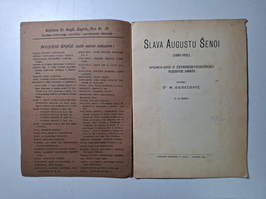 Ogrizović, Milan - Slava Augustu Šenoi (1881-1921) : spomen-spis o četrdesetogodišnjici njegove smrti : (s 14 slika)