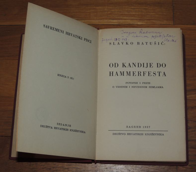 Slavko Batušić OD KANDIJE DO HAMMERFESTA posveta autora