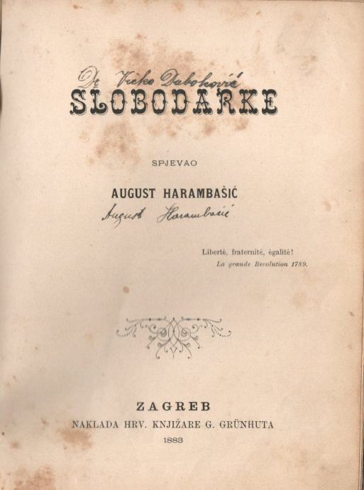 Slobodarke, zbirka pjesama Augusta Harambašića. Prvo izdanje.