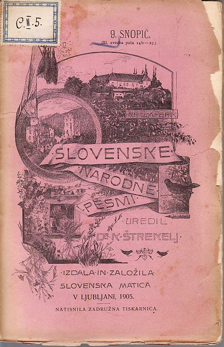 SLOVENSKE NARODNE PESMI , LJUBLJANA 1905. - UREDIL K. ŠTREKELJ
