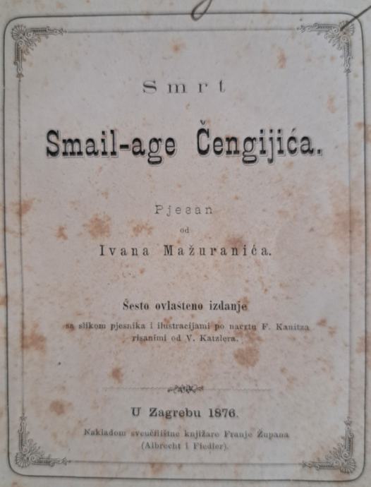 Izuzrtno rijetko bibliofilsko izdanje iz 1876 god. od Naklade Sveučilišne knjižare Franje Župana (Albrecht i Fledler). Knjiga je u dibrom stanju i ima sačuvanu litografiju Mažuranića.
