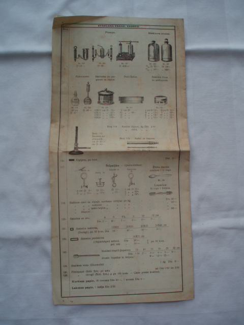 Specijalni cjenik fizikalnih i laboratorijskih potrpština Staklane vlasnika Vj. Franza , Zagreb na Jelačićevom trgu 7