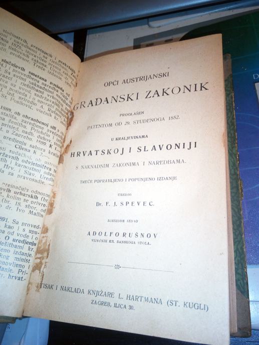 Spevec : Opći Austrijanski građanski zakonik Zagreb 1899.