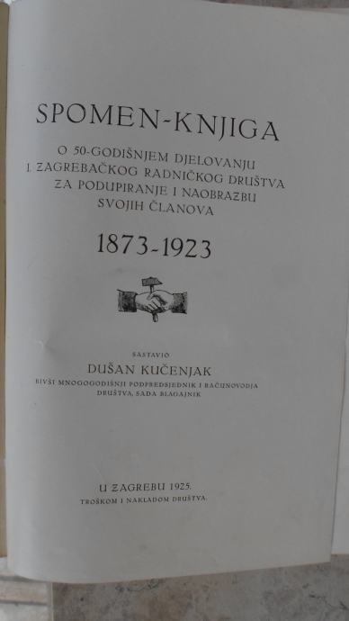 Prodajem spomen knjigu o prvom zagrebačkom radničkom društvu prigodom 50 godišnjice djelovanja.