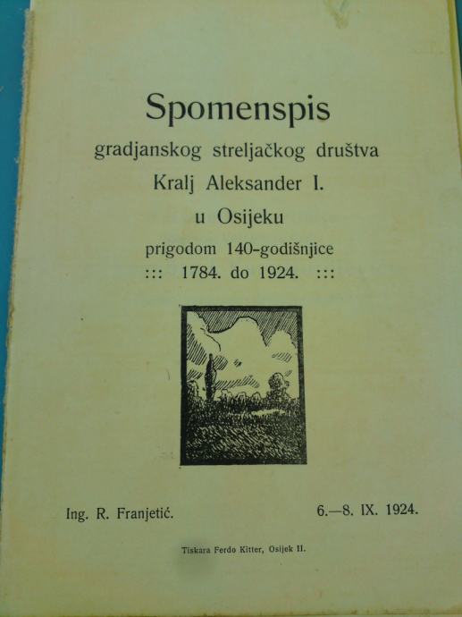 Spomenpis Građanskog streljačkog društva Kralj Aleksander I. u Osijeku, prigodom 140-godišnjice; 1784. - 1924.g. , napisao: ing. R. Franjetić, u izdanju Građ. strel. društva iz Osijeka.