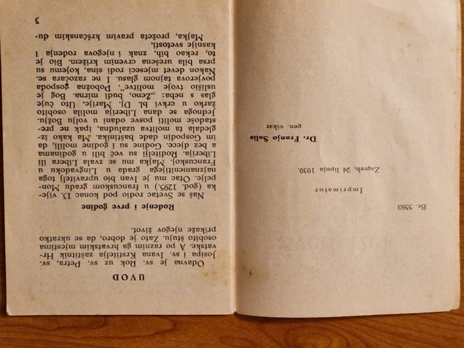 Stara knjižica Sveti Rok 1939. Životopis u rijeći i slici