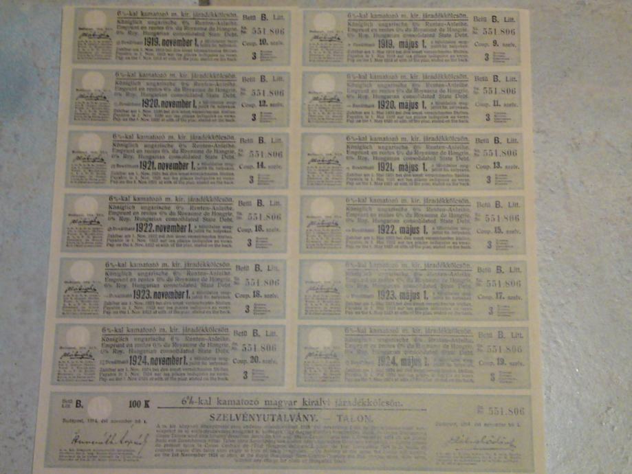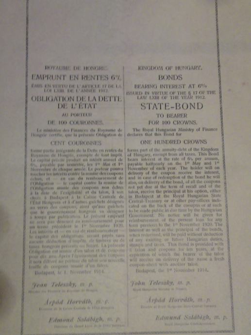 STARA MAĐARSKA DRŽAVNA OBVEZNICA IZ 1912.g.
