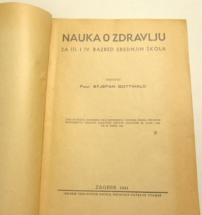 STJEPAN GOTTWALD NAUKA O ZDRAVLJU, UDŽBENIK IZ NDH