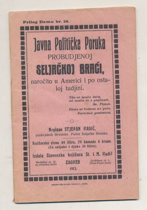 Stjepan Radić Javna Politička Poruka probudjenoj seljačkoj braći naroč
