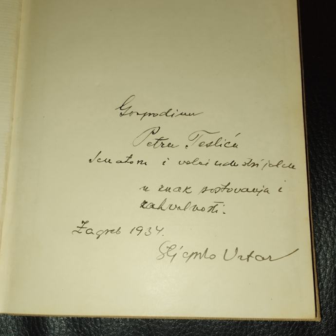 Na prvim stranicama je i potpis autora s posvetom autora "...Senatoru i veleindustrijalcu.." Petru Tesliću - poznatoj vojnoj ličnosti s početka 20tog stoljeća, a kasnije Senatoru i jednome od najbogatijih industrijalaca u kraljevini Jugoslaviji.