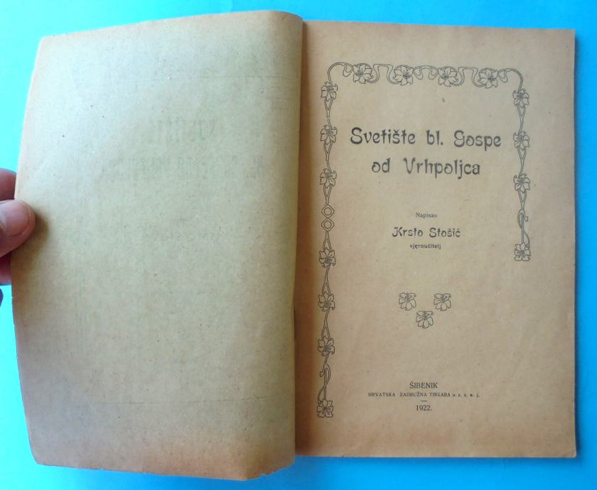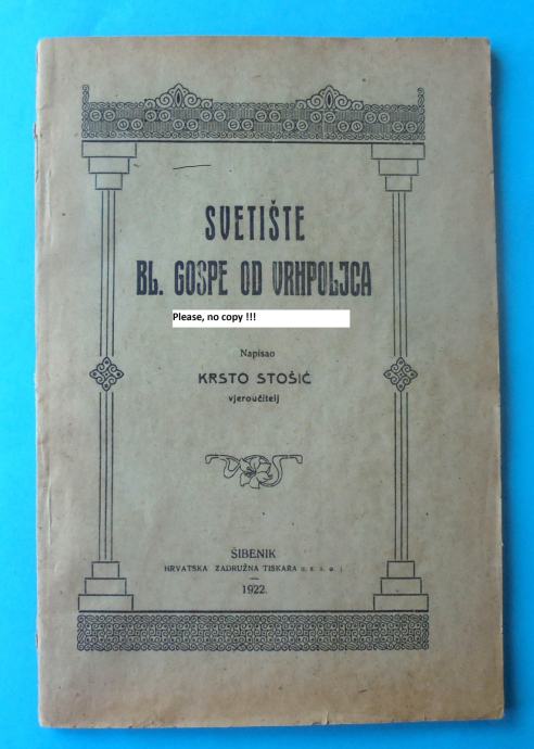 Stara knjiga iz 1922. godine autora Krste Stošića o Svetištu Bl. Gospe od Vrhpoljca (Župa Donjega Polja i Vrhpoljačka).