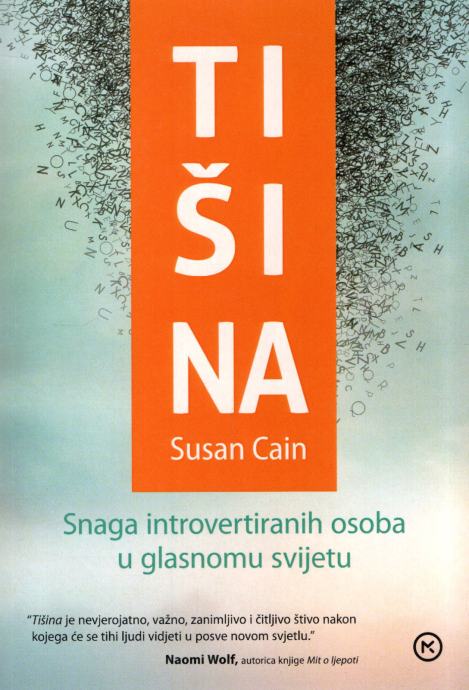 U knjizi Tišina Susan Caine pokazuje kako se rad mozga introvertiranih osoba razlikuje od rada mozga ekstrovertiranih te kako društvo podcjenjuje i ne shvaća introvertirane. Introvertiranim osobama pomaže kako da shvate sami sebe i kako da iskoriste svoje prednosti. Napisana sa strašću, prožeta odličnim istraživanjima i pričama iz stvarnoga života, knjiga Tišina trajno će promijeniti način na koji doživljavamo introvertirane osobe, ali i način na koji doživljavamo sami sebe.