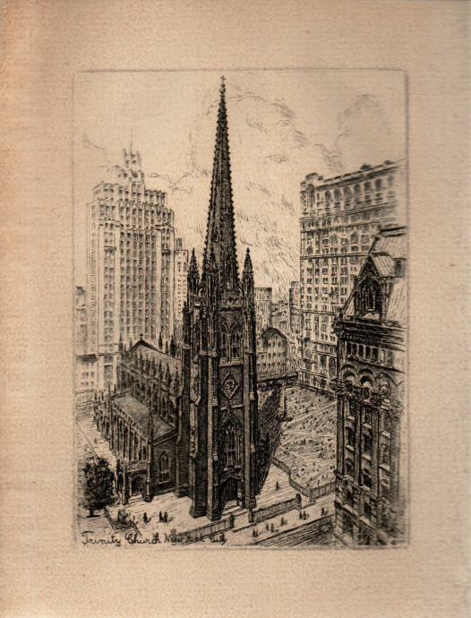 Božićna i novogodišnja čestitka s motivom crkve Svetog Trojstva u New Yorku.