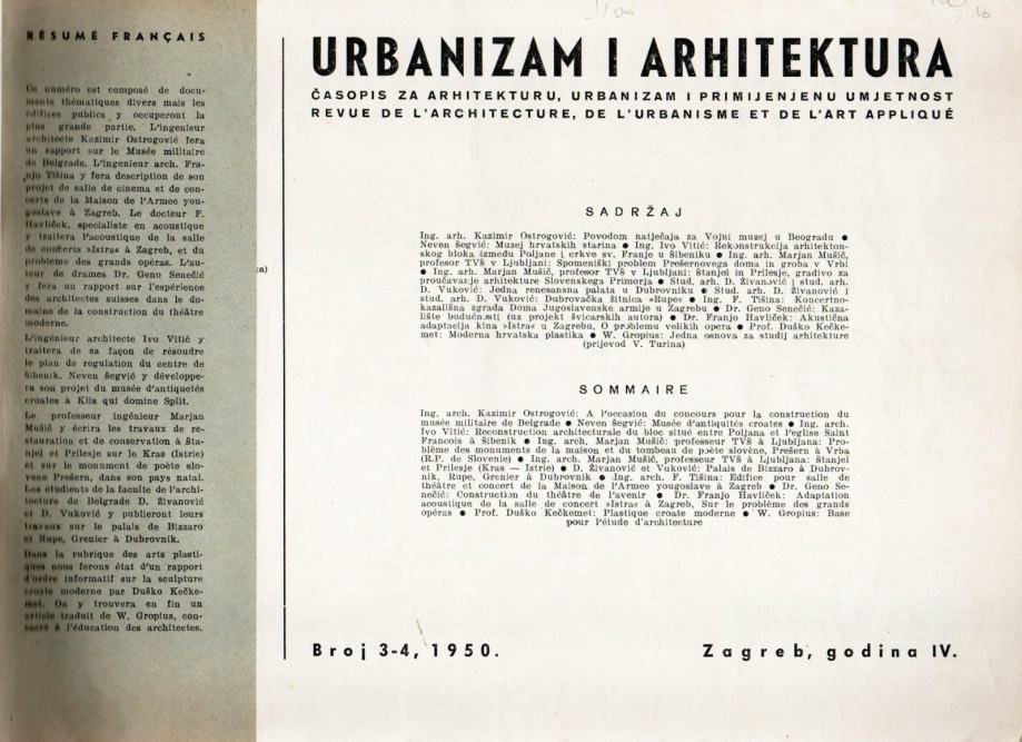 Urbanizam i arhitektura – časopis za arhitekturu…broj 3-4, 1950.