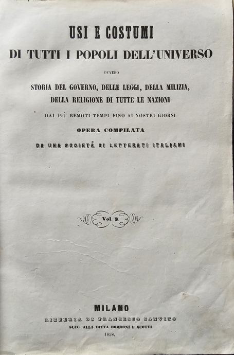 USI E COSTUMI DI TUTTI I POPOLI DELL'UNIVERSO - parte III Milano 1858