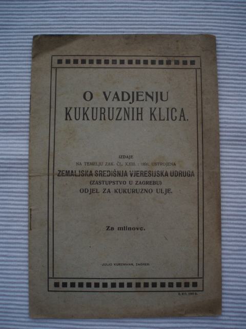 izdaje Zemaljska središnja Vjeresijska udruga - zastupstvo u zagrebu, Odjel za kukuruzno ulje