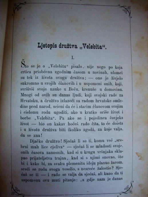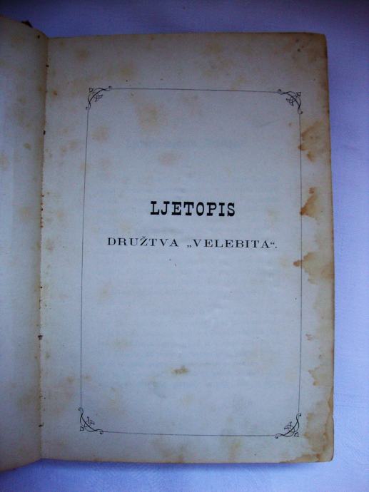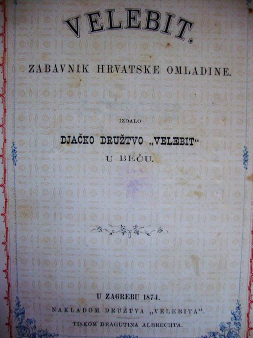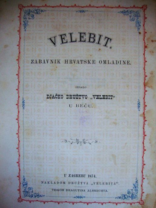 Rijetki ljetopis društva Velibite iz 1874. godine u Zagrebu ,izdalo djačko društvo "Velibit" u Beču