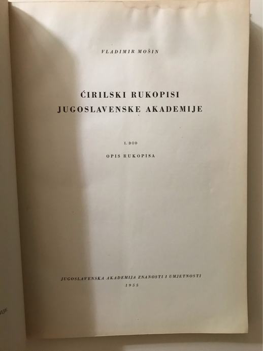 Vladimir Mošin : Ćirilski rukopisi Jugoslavenske akademije I i II