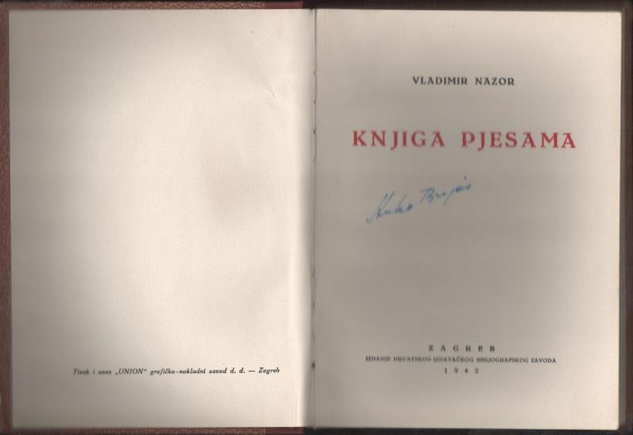 Vladimir Nazor, Knjiga pjesama, Zagreb 1942., 1. izdanje