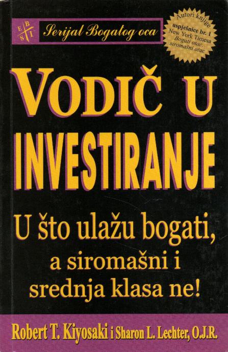 Robert T. Kiyosaki Vodič u investiranje otkrit će vam: osnovna pravila investiranja bogatog oca, smanjenje rizika u investiranju, 10 investitorskih kontrola prema bogatom ocu, pretvorbu zarađenog prihoda u pasivni prihod i prihod od vrijednosnica i filozofiju vrhunskog investitora.