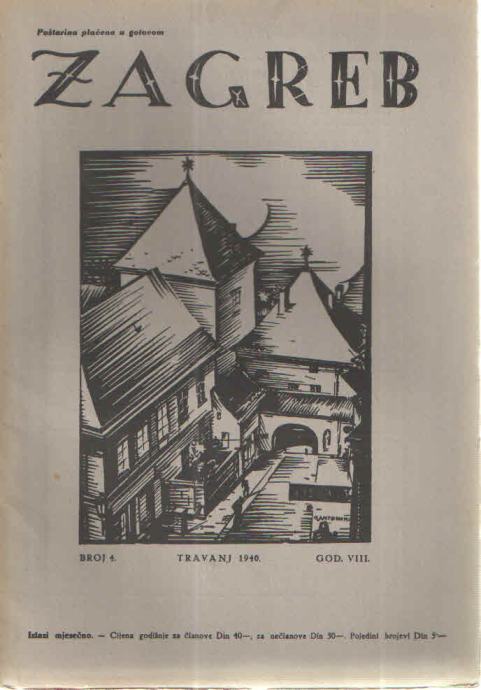 Zagreb, broj 4, travanj 1940., god. VIII. Revija Društva Zagrebčana, izlazila mjesečno.