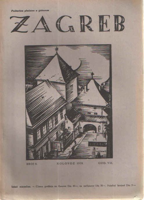 Zagreb, broj 8, kolovoz 1939., god. VII. Revija Društva Zagrebčana, izlazila mjesečno.