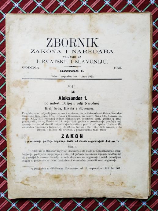 Zbornik zakona i naredba valjanih za Hrvatsku i Slavoniju, 1923.g.