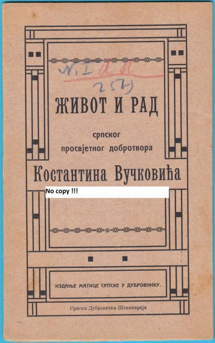 ŽIVOT I RAD SRPSKOG DOBROTVORA VUČKOVIĆA Matica Srpska, Dubrovnik 1909