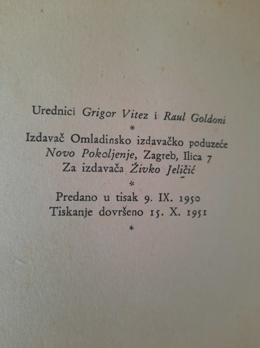 Novo Pokoljenje Zagreb 1951. Meki uvez.