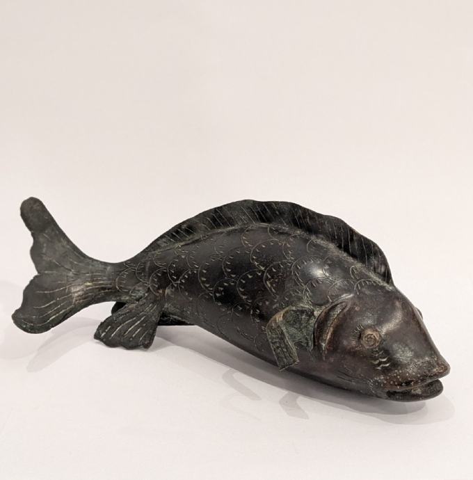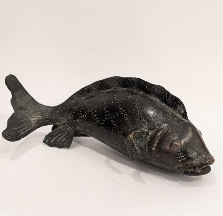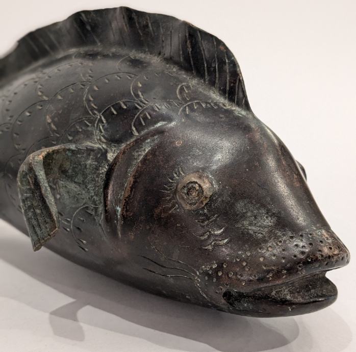 Antikna kineska bronca iz 19. stoljeća u odličnom stanju, prikaz ribe.