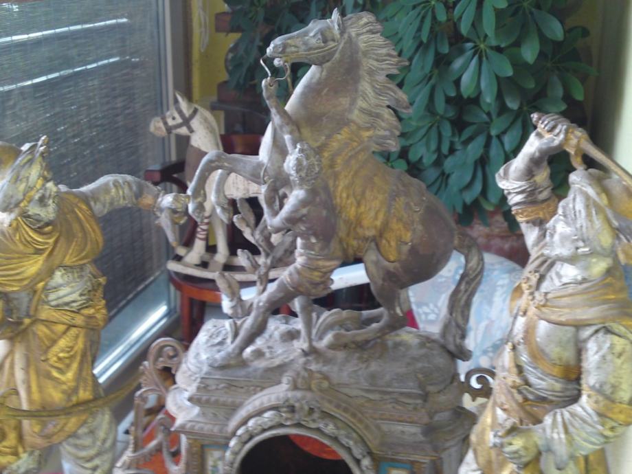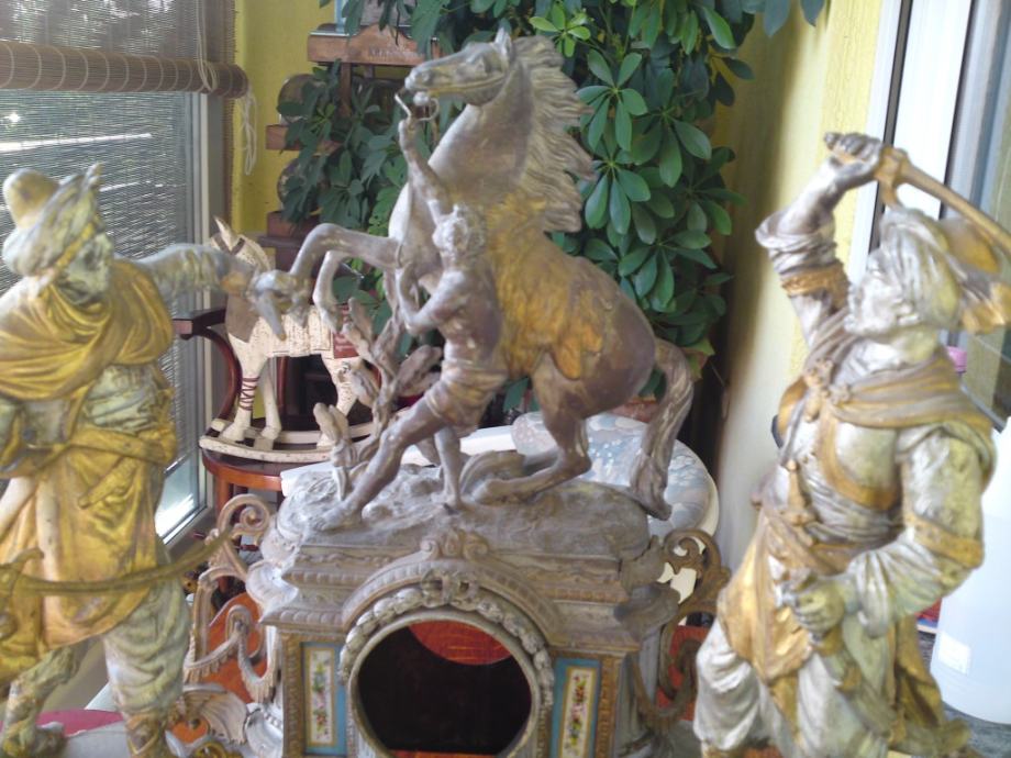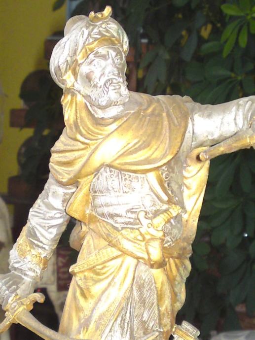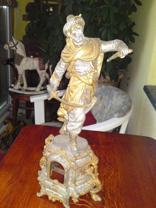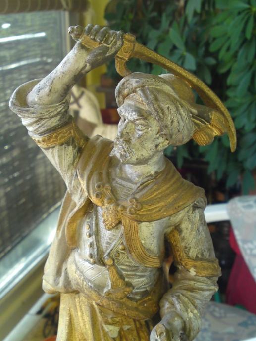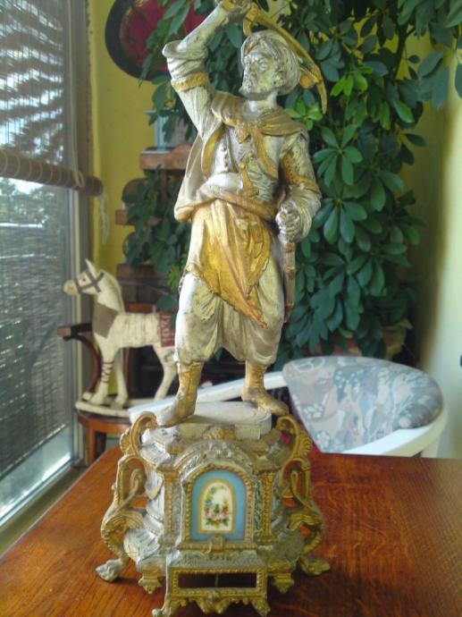 3 stare figure od špijatera: 1 kučište za sat - konj i timaritelj; 2 figure turskih ratnika. Odličan umjetnički rad. Ovo se danas rijetko viđa!