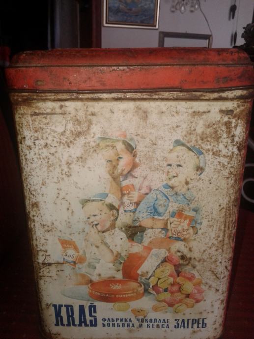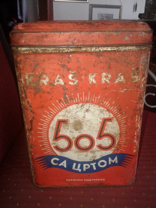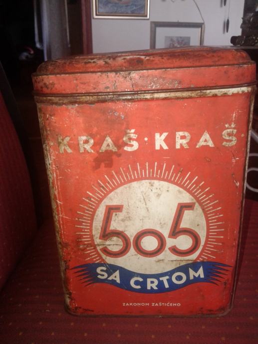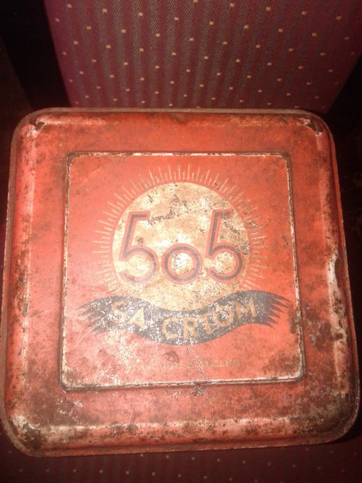 Limena kutija 505 sa crtom iz 50tih godina,stanje sukladno godinama vidljivo na slikama,molim zvati na 091 5281679