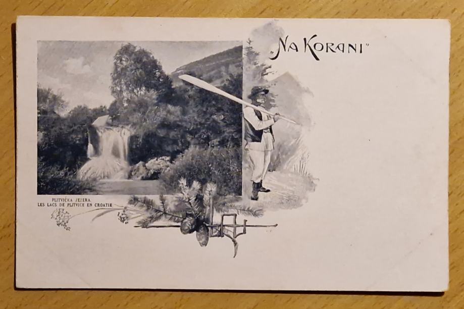 A-U razglednica Na Korana Plitvička jezera Lika Seljak s veslom Nošnja