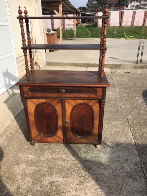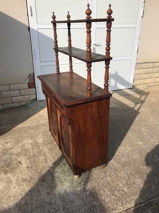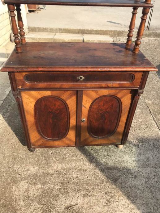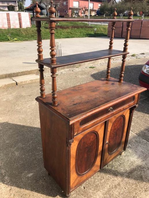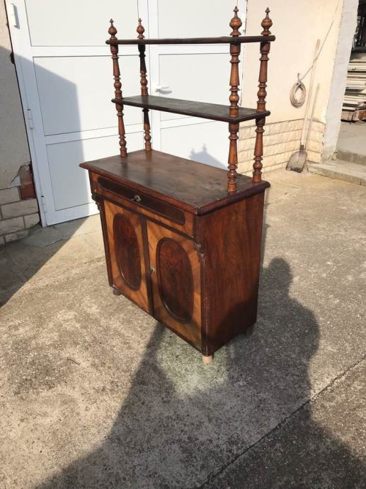 Alt deutsch komoda sa etazerom u dobrom stanju. Potrebni su sitniji restauratorski zahvati ili zahvati po zelju musterije, restauracija je moguca.